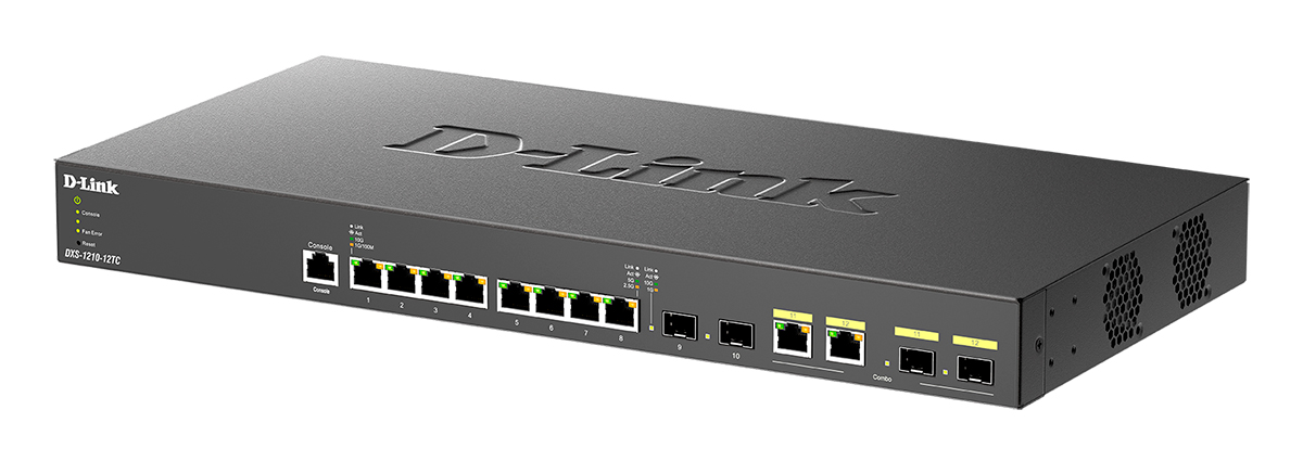 The D-Link DXS-1210-12TC 10 Gigabit/Multi-Gigabit Ethernet Smart Managed Switch is a cost-effective 10 Gigabit switch capable of servicing a range of network needs in any business. Supporting 10GBase-T/SFP+ combo ports, this switch provides connection flexibility across a network allowing easier network integration. With high performance and low latency, the DXS-1210-12TC fulfills the needs for virtualization, cloud services, and server-to-server applications, making it perfect for Small-to-Medium-Business (SMB) customers.