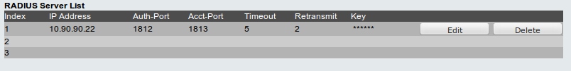После нажатия Apply появится строка в Radius Server List: