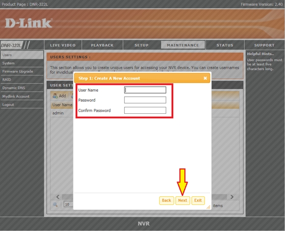 Вопрос: Как добавить пользователя в сетевом видеорегистраторе DNR-322L