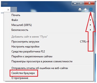 Шаг 2: Нажмите значок Настройки, а затем нажмите Свойства браузера