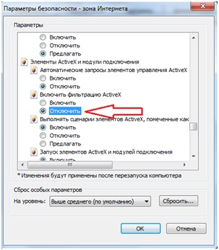 Примечание: Включение настроек заблокирует установку ActiveX.