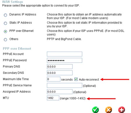 Параметр MTU должен лежать в диапазоне от 1000 до 1492. Устройство неработоспособно при MTU 0.