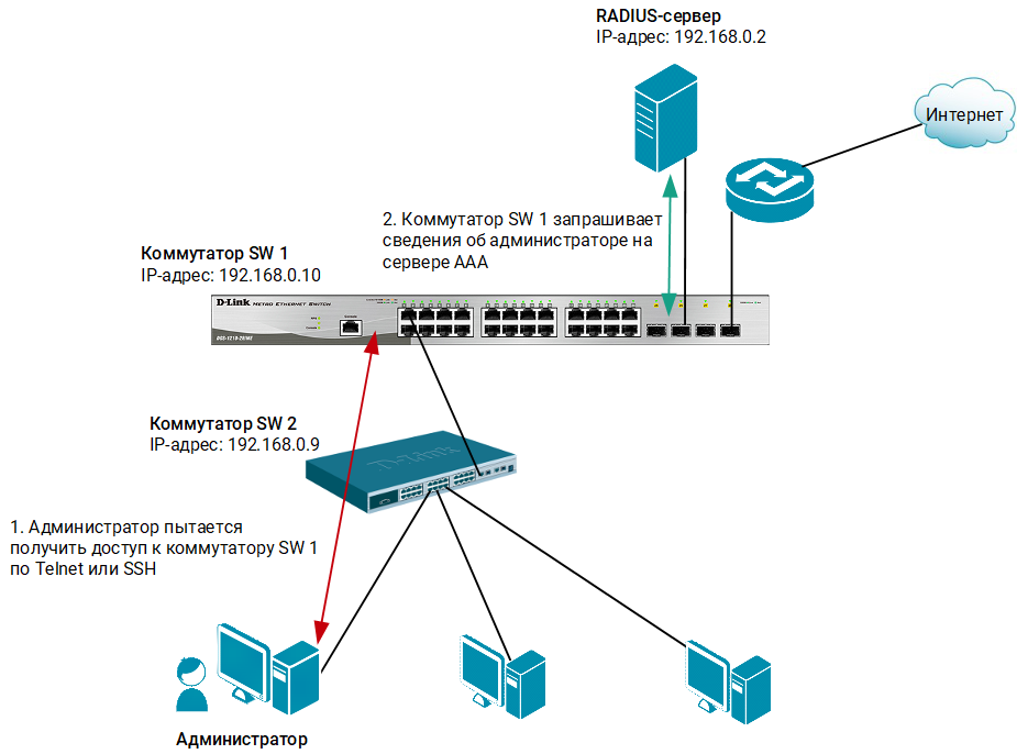 Вопрос: Пример настройки ААА с использованием RADIUS-сервера
