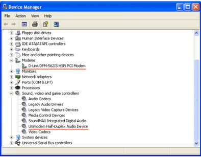Проверяете, чтобы был выбран "(Current Setup)", т.е. по умолчанию "DFM-562IS HSFi PCI Modem"