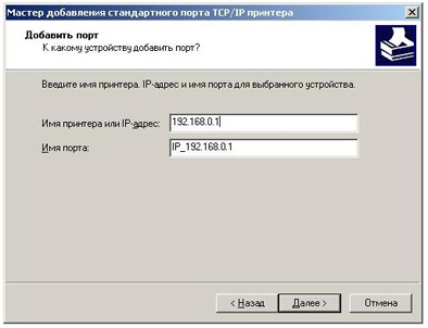 8. Введите ip адрес роутера. (По умолчанию 192.168.0.1), Имя порта оставьте как есть. Нажмите Далее