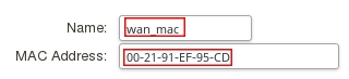 add Address EthernetAddress wan_mac Address=00-21-91-EF-95-CD