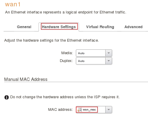 Перейдите на вкладку Hardware Settings и в поле MAC Address из выпадающего меню установите wan_mac