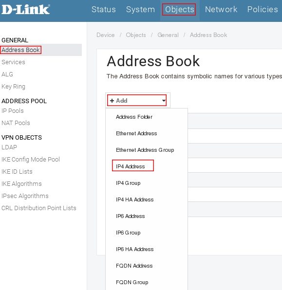 Пройдите в web интерфейсе Objects → Address Book, нажмите кнопку Add, выберите из выпадающего меню IP4 Address.