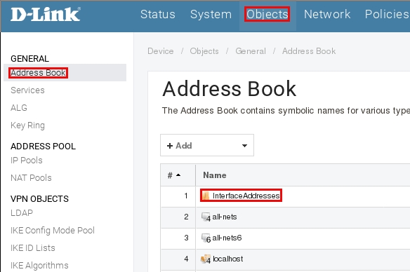 Пройдите в Web интерфейсе Objects → Address book → InterfaceAddresses.