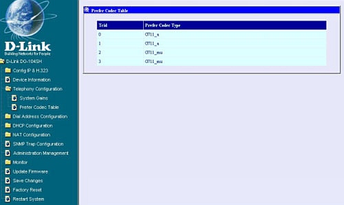 Вкладка Telephony Configuration -> Prefer Codec Table