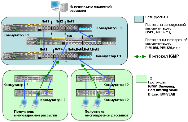 - Семейство коммутаторов D-Link xStack отвечает всем требованиям для использования в сетях многоадресной рассылки уровня MAN (Metro Area Network).