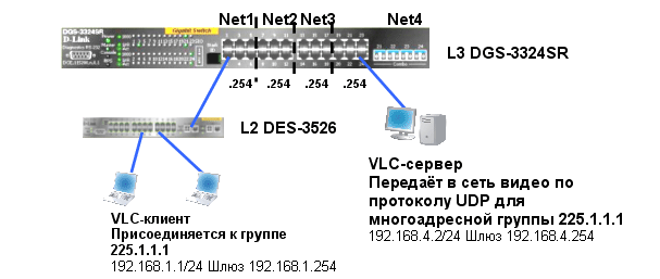 Вручную настроить IP-адрес и маску подсети для соответствующей IP- сети, установить и запустить ПО сервера многоадресной рассылки, например программу VLC, работающую в режиме сервера. Настроить вещание каналов, используя многоадресную рассылку.