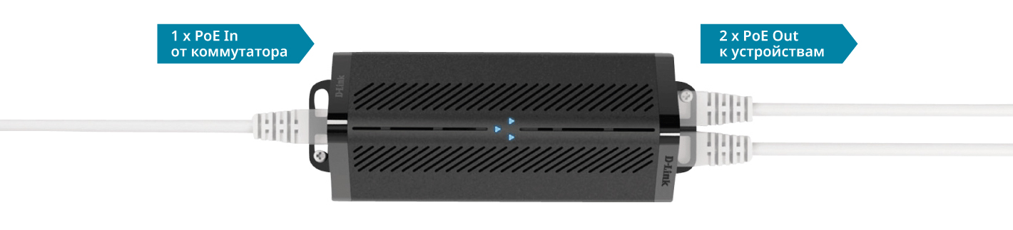 Быстрое подключение двух PoE-устройств по одному кабелю на расстоянии до 200 м
