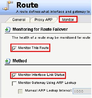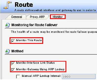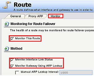 Liikuge vahelehele Monitor, paigaldage linnuke Monitor This Route, Monitor Interface Link Status ja Monitor Gateway Using ARP Lookup, seejärel vajutage OK.