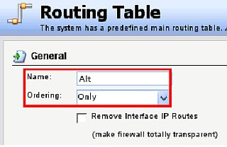 Valige vasakust paneelist Routing > Routing Tables, vajutage nuppu Add, valige Routing Table, väljal Name valige Alt, väljal Ordering valige Only ja vajutage nuppu OK.