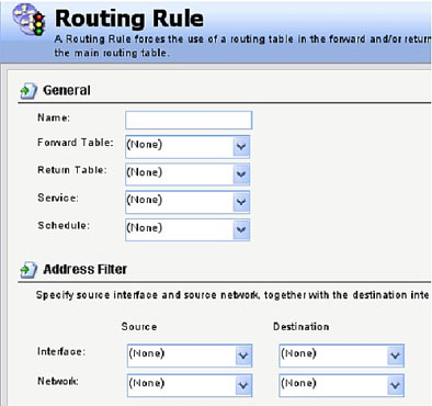 Nendes reeglites osutavad filtrid Address Filter ja Service reegli toimimispõhimõttele, filtrid Forward Table ja Return Table оn võrguliikluse ümbersuunamise jaoks. Forward Table määrab tabelis väljuva võrguliikluse, aga Return Table – marsruutimise sissetulevale võrguliiklusele.