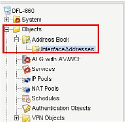 Valige vasakul Objects > Address Book > InterfaceAddresses: