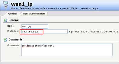 Muutke järgmine objekt: vajutage wan1_ip, IP Address väljal sisestage 192.168.60.5 ja vajutage ОК.