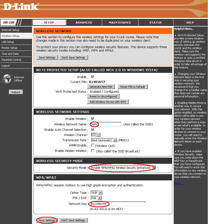 5. Security Mode rippmenüüst valige Enable WPA/WPA2 Wireless Security (enhanced)