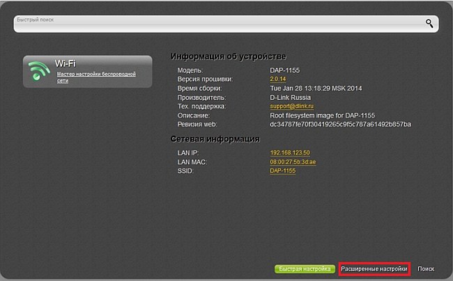 Через web-браузер зайдите в настройки точки доступа по адресу 192.168.0.50