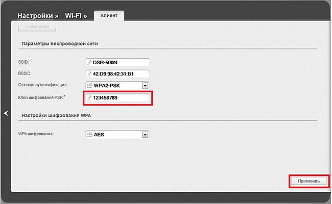После ввода пароля нажмите Применить.