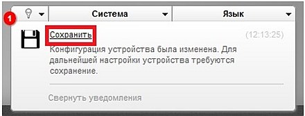 6. Далее, в правом вернем углу интерфейса, появится уведомление об изменении конфигурации устройства. Необходимо нажать сохранить.