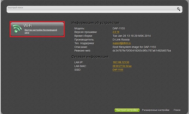 Через web-браузер зайдите в настройки точки доступа по адресу 192.168.0.50
