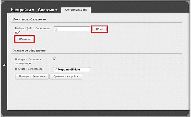 В появившемся окне кликните Обзор и выберете файл с прошивкой, далее нажмите Обновить.