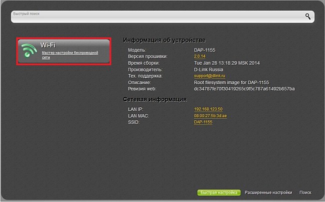 Через web-браузер зайдите в настройки точки доступа по адресу 192.168.0.50