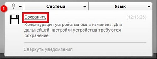 Далее в правом верхнем углу web-интерфейса появится уведомление об изменении конфигурации устройства. Необходимо нажать Сохранить.