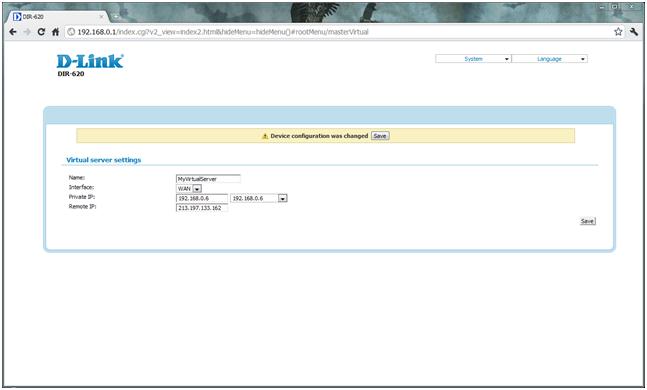 Pasirinkę nustatymus spauskite Change ir išsaugokite pakeitimus – atsiradusiame viršuje meniu (Device configuration was changed) spauskite Save.