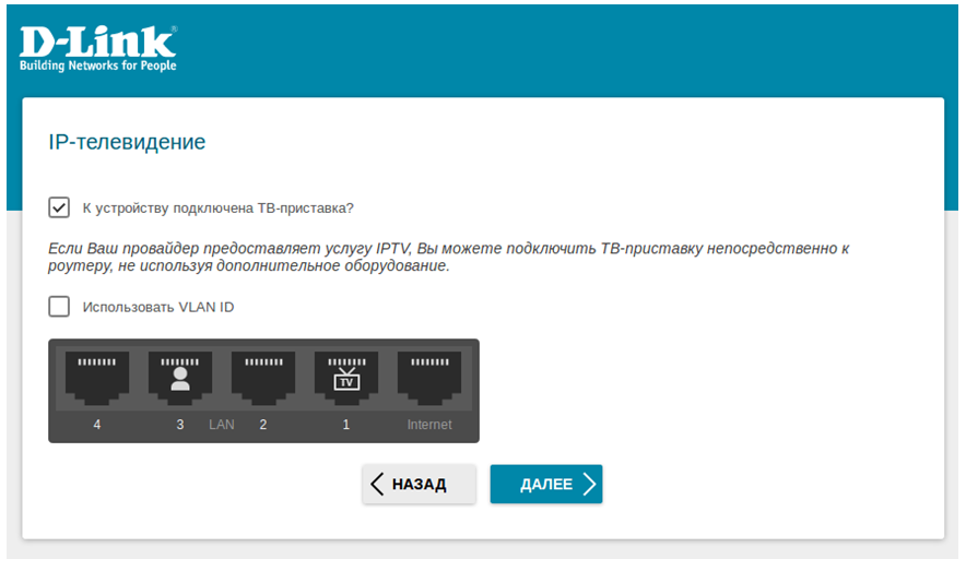 Если ваш провайдер предоставляет услуги телевидения, используя технологию VLAN, установите флажок в поле Использовать VLANID и пропишите VLAN ID.
