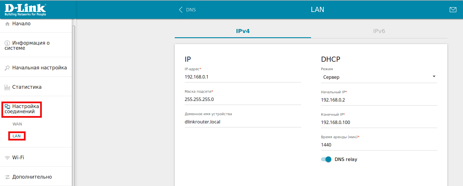 2. Перейдите в раздел Настройка соединений и выберите подраздел LAN.