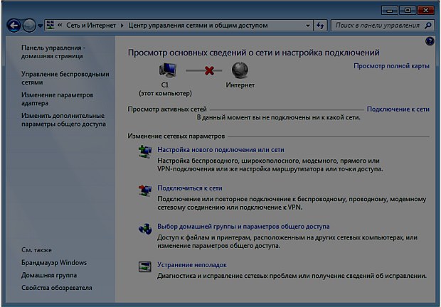Рисунок 5. Окно Центр управления сетями и общим доступом.