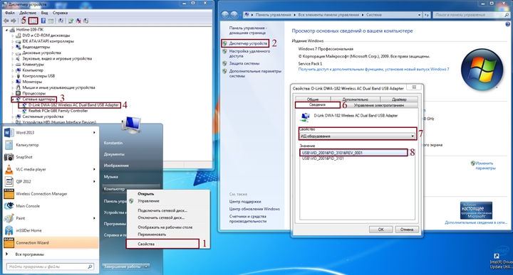 Если у Вас беспроводной адаптер компании D-Link то, стоит воспользоваться пошаговой инструкцией под названием: «Установка беспроводного адаптера DWA на компьютер с ОС Windows 7».
