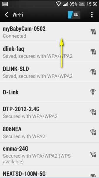 Шаг 3: Подключитесь к беспроводной сети камеры. Имя беспроводной сети и пароль указаны на этикетке на основании устройства.