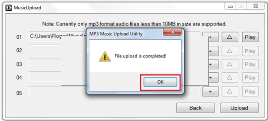 Примечание: можно загрузить сразу все выбранные мелодии, нажав кнопку Upload.