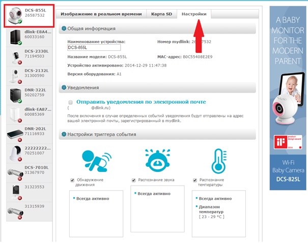 Вопрос: Как настроить функцию определения температуры на камере DCS-855L, используя сервис mydlink?