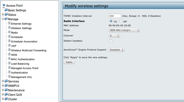 Для того, чтобы посмотреть MAC-адрес wlan-интерфейса нужно перейти в меню Manage → Wireless Settings