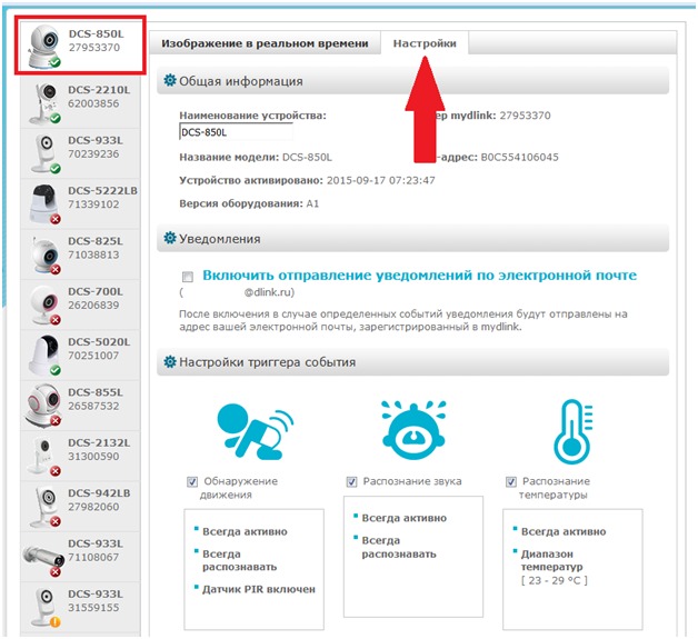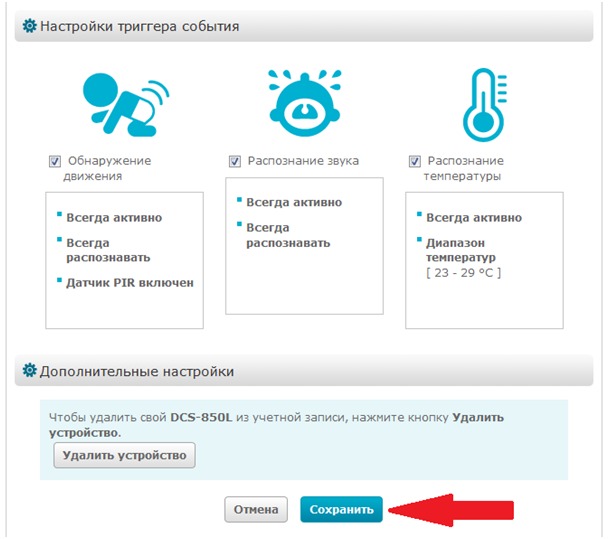 Вопрос: Как настроить функцию определения температуры на камере DCS-850L, используя сервис mydlink?