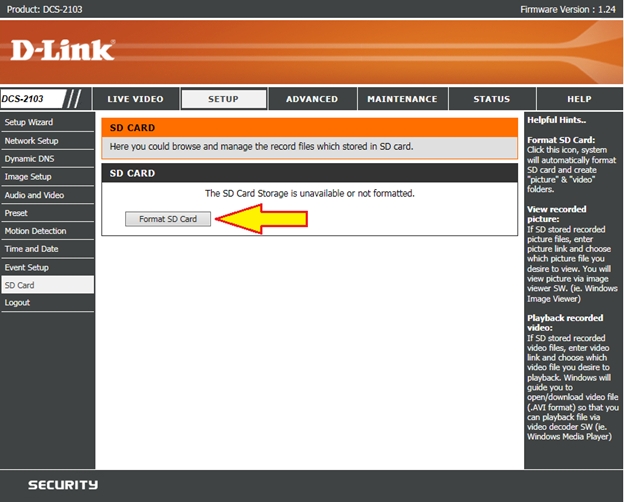 Примечание: если нет кнопки Format SD Card, то карта не определяется. Подключите карту microSD к компьютеру и отформатируйте ее в формате exFAT. После этого подключите карту обратно в камеру.