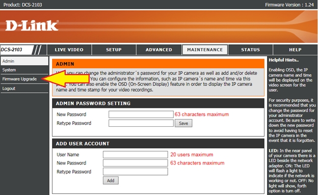 Шаг 4: Выберите слева в меню Firmware Upgrade (Обновление прошивки).
