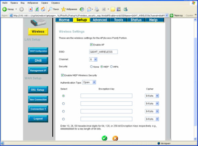 Вопрос: Настройка шифрования Wi-Fi в DSL-G604T