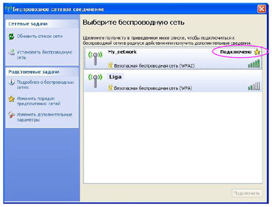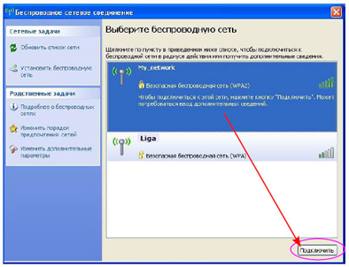 В перечне обнаруженных беспроводных сетей находим и выделяем имя нашей сети «My_network». И нажимаем кнопку внизу окна справа «Подключить».
