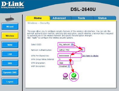 Вопрос: Настройка Wireless части ADSL маршрутизатора DSL-2640U