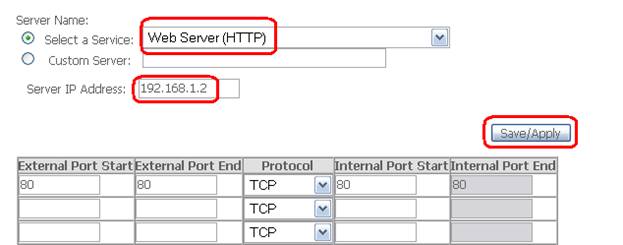 Все запросы на соединение, приходящие на 80 порт со стороны WAN интерфейса, будут транслироваться на 80-й порт хоста в локальной сети с адресом 192.168.1.2