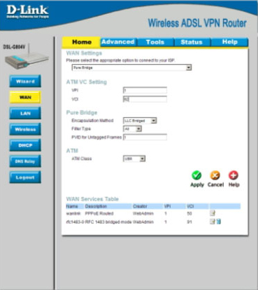 | Wan Settings | Pure Bridge |