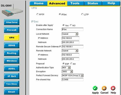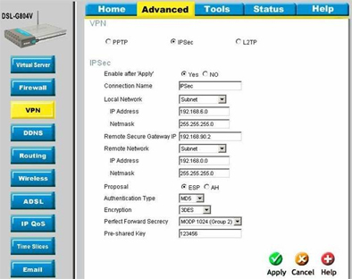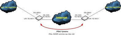 Этот пример демонстрирует настройку IPSec туннелей между ADSL маршрутизаторами DSL-G804V