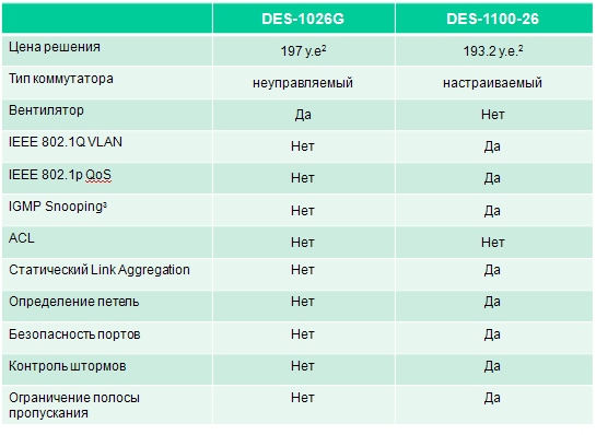 Компания D-Link предлагает альтернативное решение для построения или модернизации таких сетей на базе коммутатора DES-1100-26.
